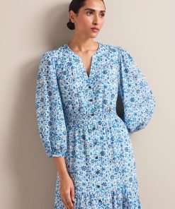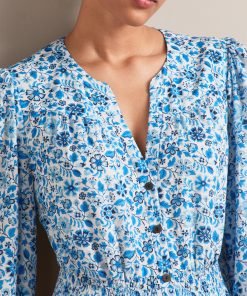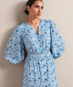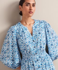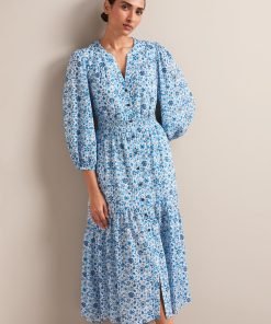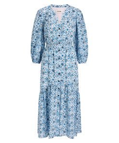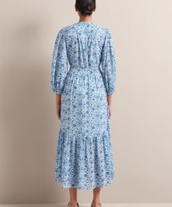 Aspen Cotton Blend Maxi Dress – White Blue Ditsy Carnation Print