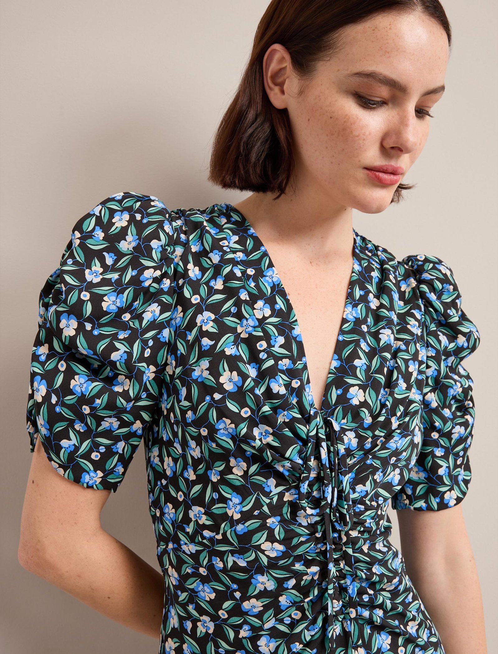 Ophelia Bias Cut Maxi Dress – Black Blue Deco Floral Print