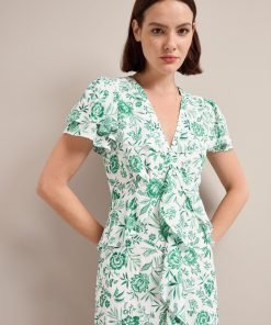 Vivienne Cotton Blend Maxi Dress – Green Palm Floral Print