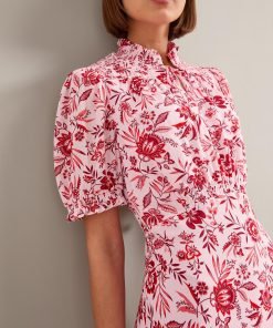Irina Cotton Blend Midi Dress – Pink Palm Floral Print