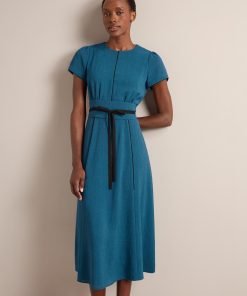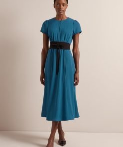 The epitome of understated elegance, the Rosie dress is a true Cefinn icon thanks to its versatility. Designed in our beautifully drapey, lightweight and machine washable voile, it works effortlessly for weddings, events or under a blazer for smarter office days. The reversible belt can be worn two ways – to co-ordinate with the dress, or to contrast with it for a more graphic look. Alternatively, swap it out for a belt of your own or remove it – we love to give you options.