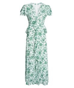 Vivienne Cotton Blend Maxi Dress – Green Palm Floral Print